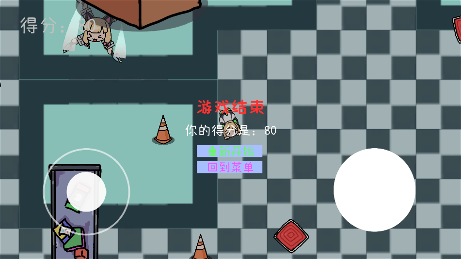 游戏结束,可以点击重新开始游戏,或者直接返回菜单