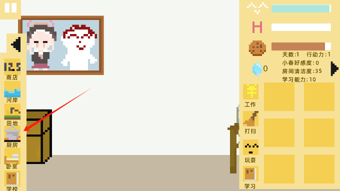 6、场景构建精致:以精致的像素场景构建出模拟管理的家,让玩家有身临其境之感,能为小春打造温馨的小家。