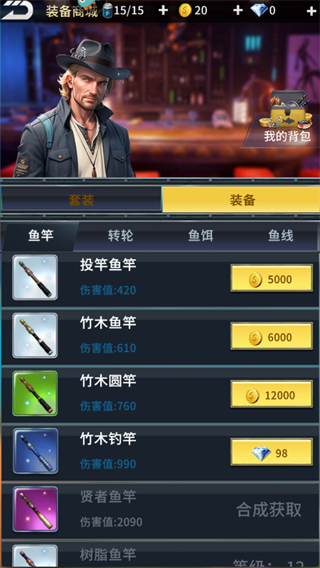 6、进入装备商城还可以购买和升级各种钓鱼设备,比如鱼竿、鱼饵等