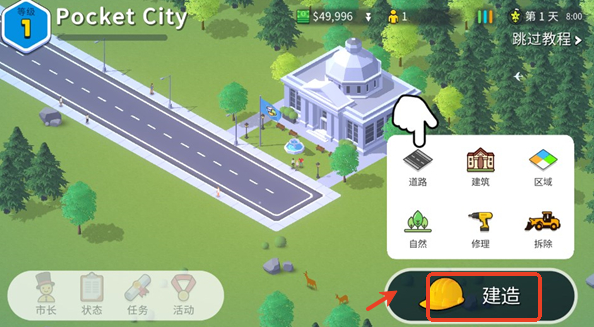 玩家可以点击右下角的“建造”,来规划城市基础设施建设