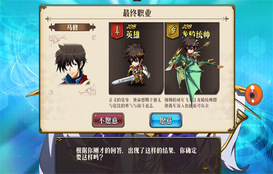 梦幻模拟战职业由女神问答的结果决定,女神会问大家一系列问题,通过你的回答,女神会为你选择适合你的职业,主角的最终职业有4种不同结果,听从命运的安排吧。