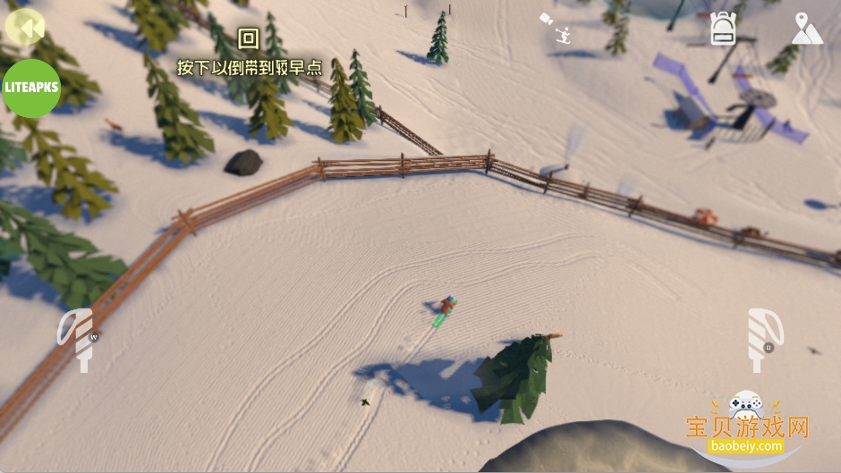 6、如果想换个角度体验比赛,只要点击右上角的小人图标,即可切换不同视角,带来更沉浸的滑雪体验。