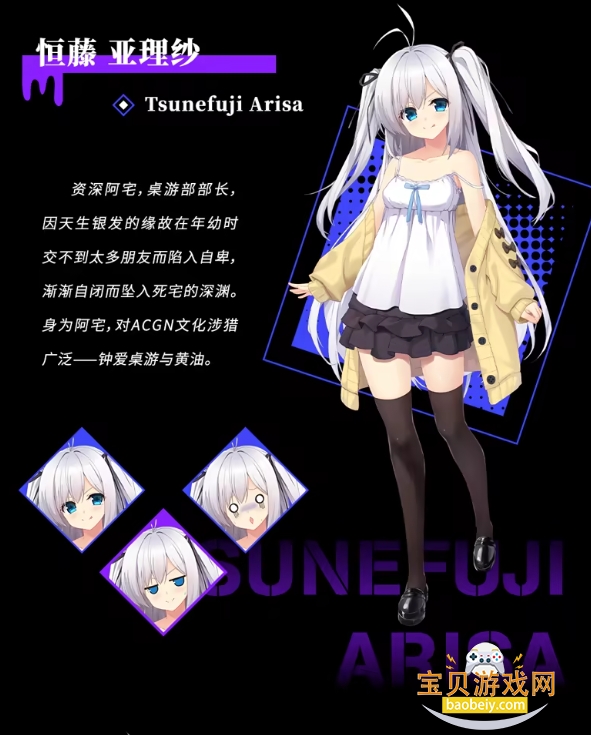 资深阿宅,桌游部部长,因天生银发的缘故在年幼时交不到太多朋友而陷入自卑:渐渐自闭而坠入死宅的深渊。身为阿宅,对ACGN文化涉猎广泛--钟爱桌游与黄油。