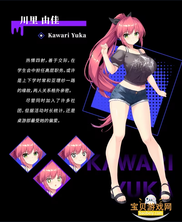 热情四射,善于交际,在学生会中担任高层职务。或许是上下学时常和亚理纱一路的缘故,两人关系格外亲密。尽管同时加入了许多社团,但据活动时长统计,还是桌游部最受她的偏爱。