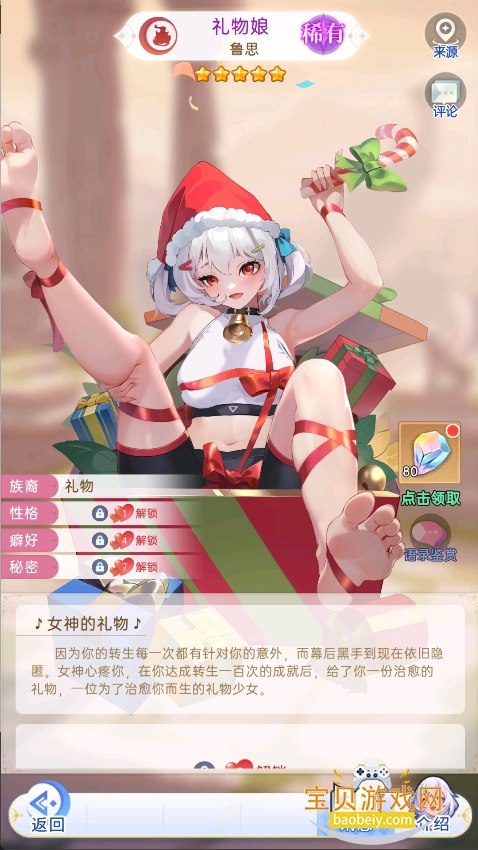 因为你的转生每一次都有针对你的意外,而幕后黑手到现在依旧匿。女神心疼你,在你达成转生一百次的成就后,给了你一份治愈的礼物,一位为了治愈你而生的礼物少女。