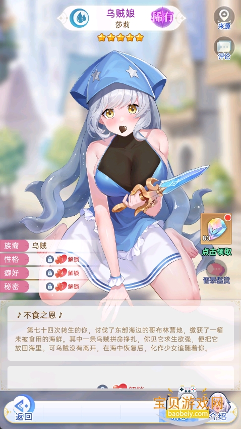 第七十四次转生的你,讨伐了东部海边的哥布林营地,缴获了一箱未被食用的海鲜。其中一条乌贼拼命挣扎,你见它求生欲强,便把它放回海里。可乌贼没有离开,在海中恢复后,化作少女追随着你。