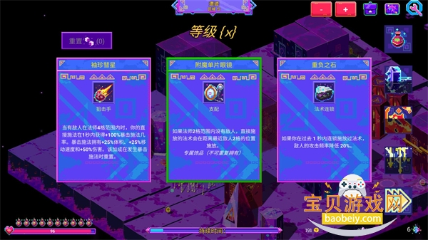 《霓虹魔咒风暴》还拥有一个丰富的饰品系统,玩家可以收集74种不同的饰品,这些饰品可以增加角色的属性、强化法术效果,甚至赋予角色特殊的能力。饰品的种类和组合让每次冒险的搭配变得充满了无限可能性。玩家可以通过搭配不同的饰品与法术,探索出一条属于自己的强力Build道路。