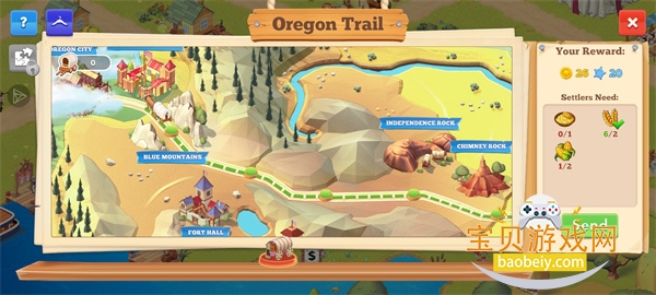 游戏的开局玩家需要带领一队拓荒者穿越西部荒野,寻找适合定居的地点。途中会遇到各种随机事件,如资源短缺、恶劣天气、野生动物攻击等,需要玩家灵活应对。探索过程紧张刺激,但画风温馨,让玩家在荒野冒险中获得独特的放松体验。
