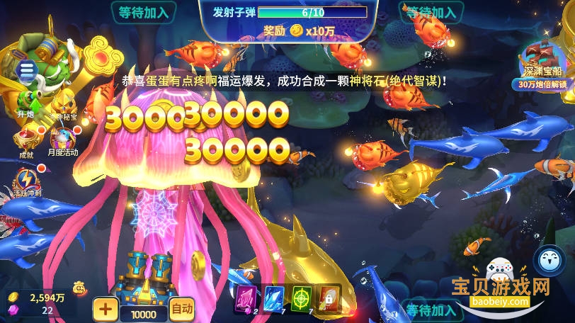 2、每次开火消耗金币,捕获鱼群后会得到相应的金币奖励。