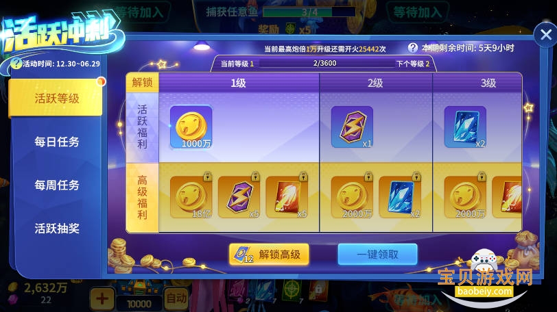 3.日常活动:游戏每天都会推出各种丰富的活动,如限时BOSS挑战.海岛经营等。这些活动不仅为玩家提供了更多的捕鱼乐趣,还可以让玩家获得额外的金币和奖励。