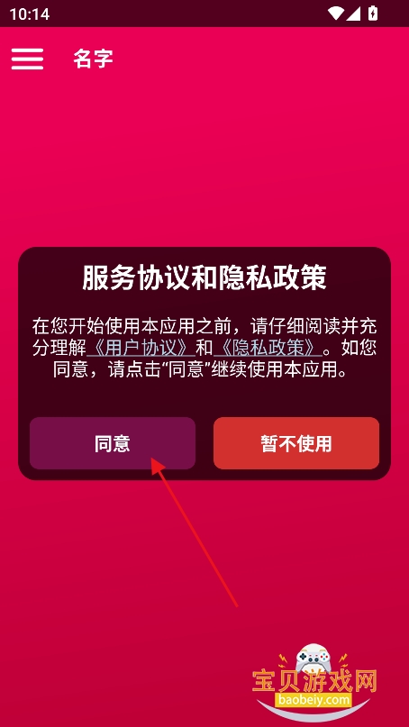 1、在宝贝游戏网下载安装,点击“同意”进入
