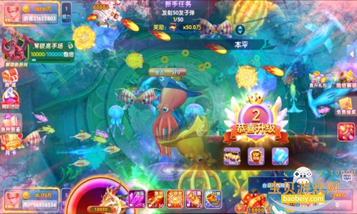日常任务与奖励体系:包含每日签到、捕鱼次数达标、关卡通关等日常任务,完成任务可获取额外金币、道具奖励;设置成长等级系统,升级后解锁专属炮台皮肤、额外道具栏等福利,提升游戏持续性与趣味性。
