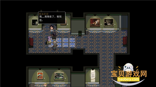 3、移动角色跟随者剧情来到展览馆,一直来到这里面左边的通道看见意外场景,你现在想立刻离开这里。