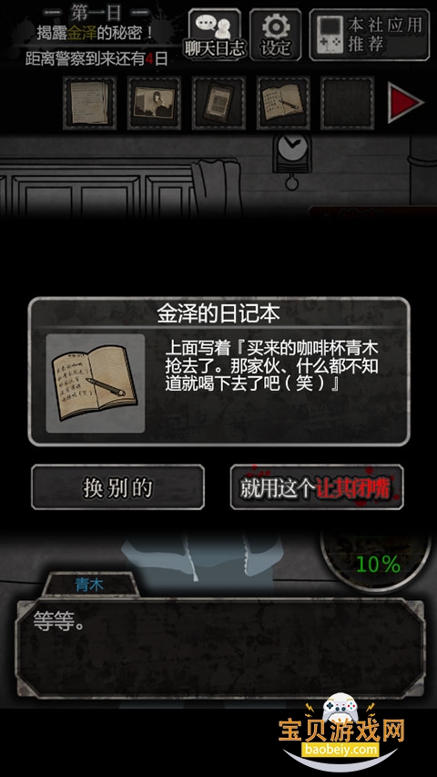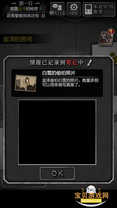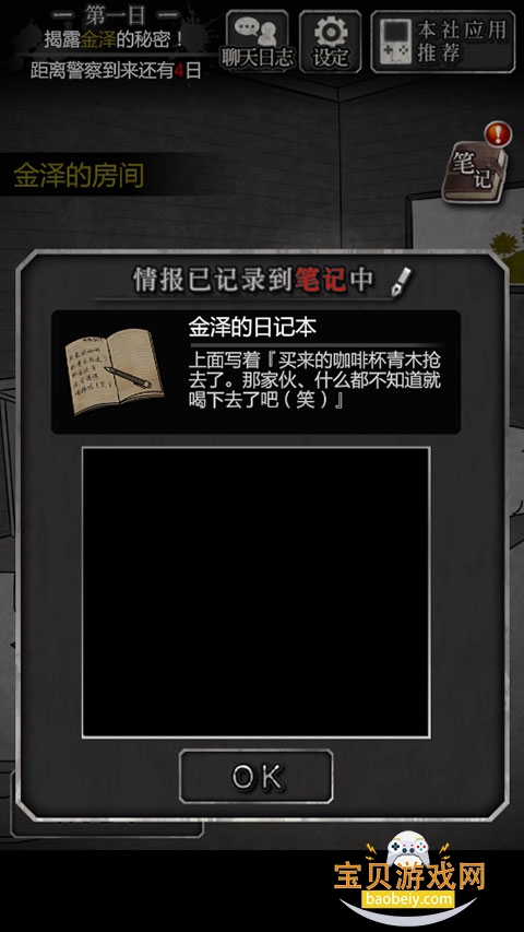 5、调查左上书桌,获得证物“金泽的日记本”;