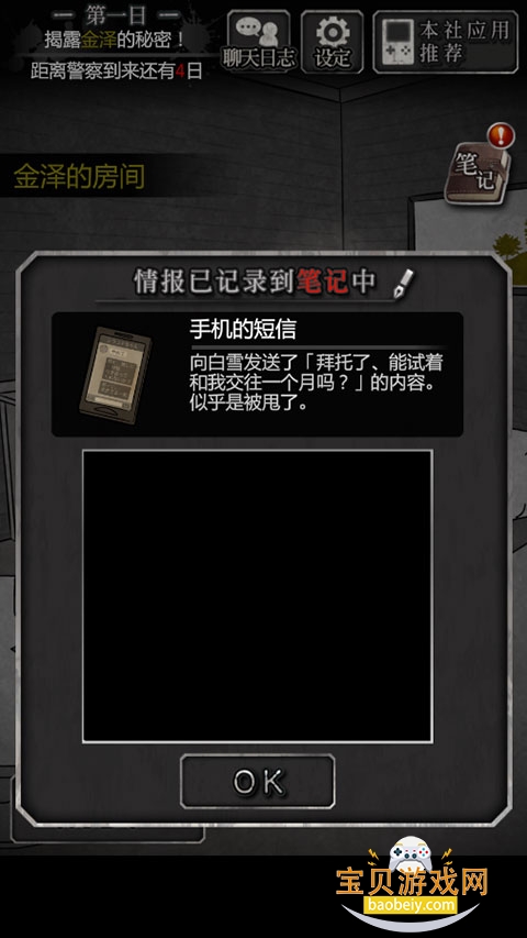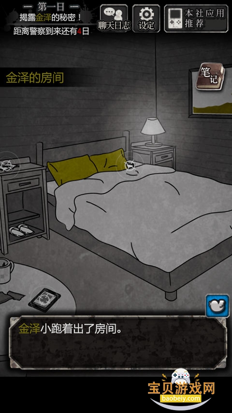 3、去三楼金泽的房间与金泽对话,触发进程“可以查看金泽的房间了”;