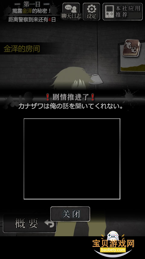 1、到三楼金泽的房间,与金泽对话,触发进程“金泽不听我的话”;