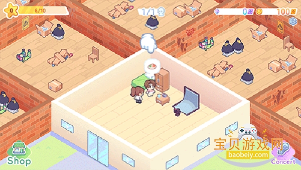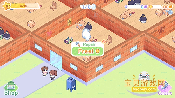 5、完成表演后,帮助实习生装饰他们住宿的地方,点击“free”进行装饰。