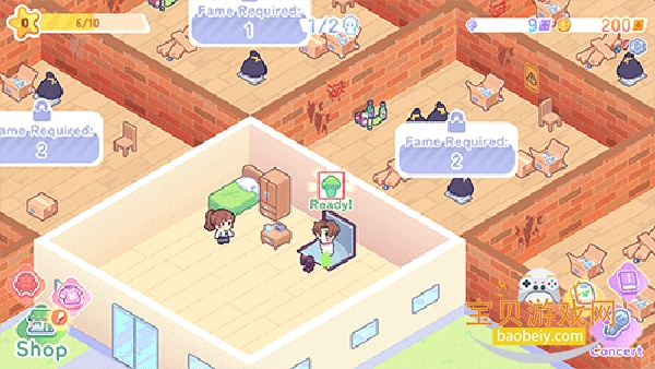 2、第一步要做的就是请雇佣受训人员并将他们带到Stardom,点击左下角“shop”。
