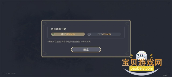 1、首次进入游戏的玩家需要选择下载语音包语言。