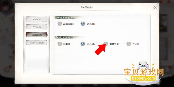 4、进入Language界面,在Text Language栏目下勾选【繁体中文】即可,