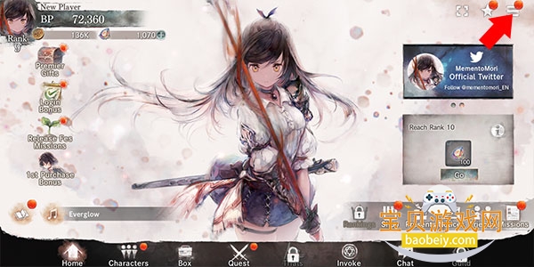 1、打开Memento Mori国际服手游,进入游戏主界面,选择右上角【三条杠】图标,
