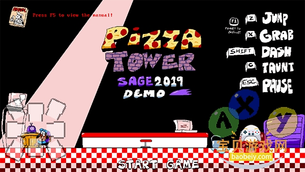 1、首先打开披萨塔,选择start game,点击A键开始游戏;