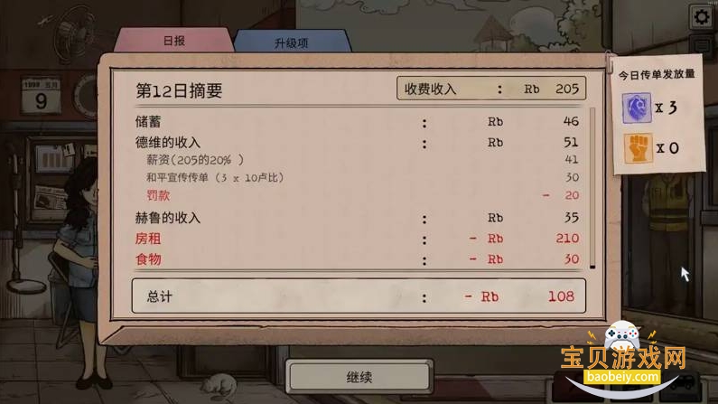 游戏中所赚取的报酬不仅需要支付房租、食物,还需要为以后孩子的出生做筹备,当然,为了工作的便利,你也可以选择购买一些辅助用具,如计算器、找零显示器、一键打开“探查”栏,一键开始栏杆……