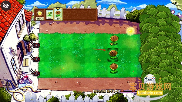 1、游戏过关方式就是收集阳光,种植植物保护草坪、别让僵尸靠近你的房子