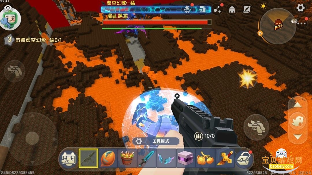 把它打的只要一点点血的时候,它会跑到火山洞外,地图上会标记它的,二阶段可以说是很难打。它会有护盾,但这有个突破点,就是可以在它头顶打到它,但是它的攻击也能打上来,火箭背包的重要性就彰显出来了,靠着走位与它周旋,在打掉将近五分之四的血后,它会召唤混乱黑龙