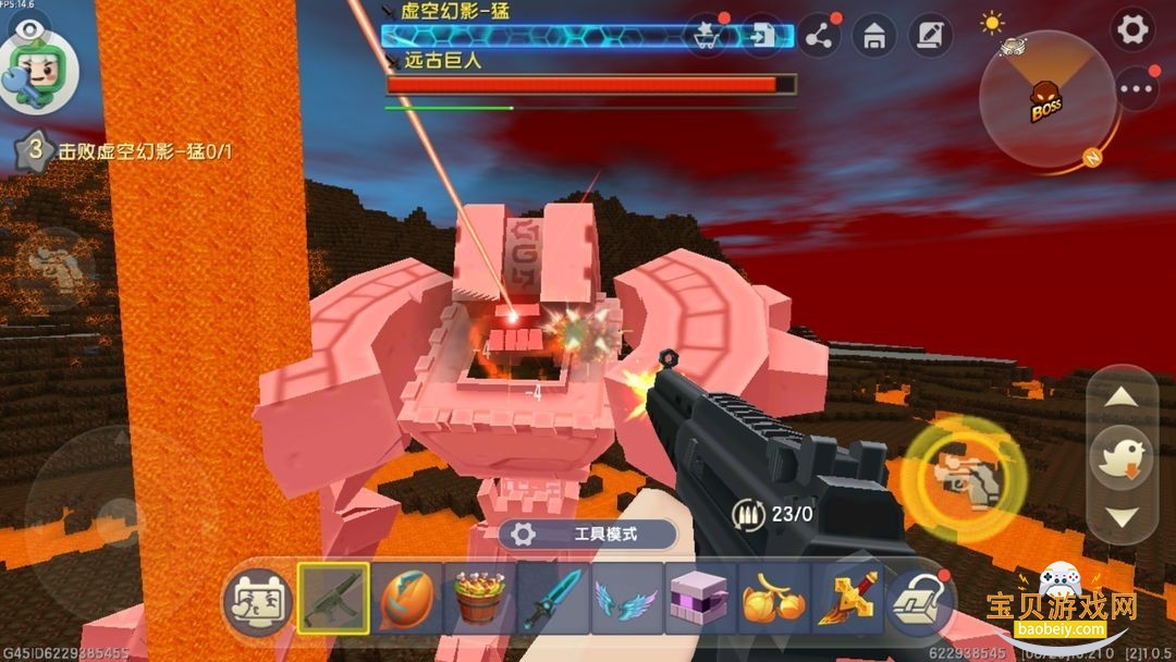 这个巨人除了发射激光,挥几下手,就啥也不会了,虽然难度不大,但血量也是很厚的。/所以多备一些装备和武器。