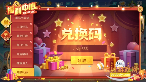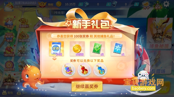 2、新手礼包,进入游戏就送100奖卷和其他捕鱼礼品。