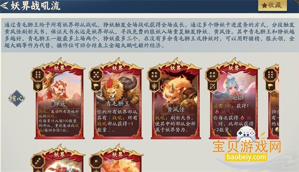 3、妖界战吼流:核心:狰妖、青毛狮王、黄风怪、三尾狐、金翅大鹏。过渡:野猪精、狼妖。