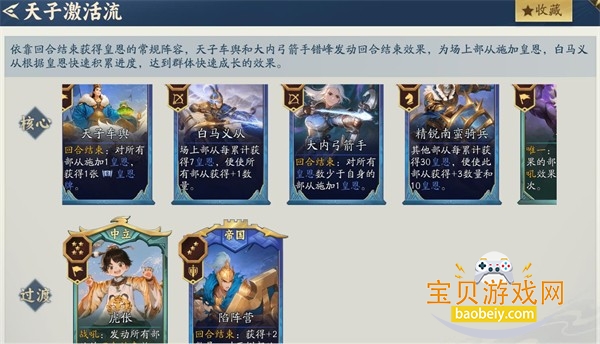 1、天子激活流:核心:天子车舆、白马义从、大内弓箭手、精锐南蛮骑兵、夸父。过渡:虎伥、陷阵营。