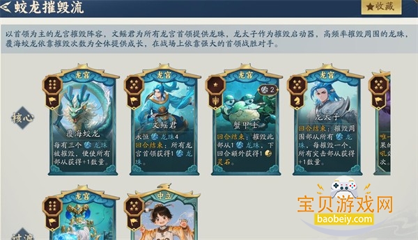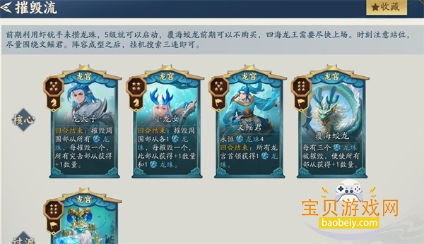 6、龙宫摧毁流:核心:龙太子、小龙女、覆海蛟龙、文鳐君。过渡:四海龙王