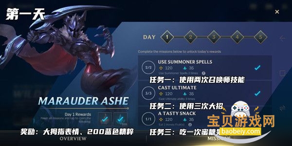 任务分为5天,每完成1天的任务可以在任务界面左下角领取一次奖励,完成第五天的任务之后就可以领取皮肤宝箱了。