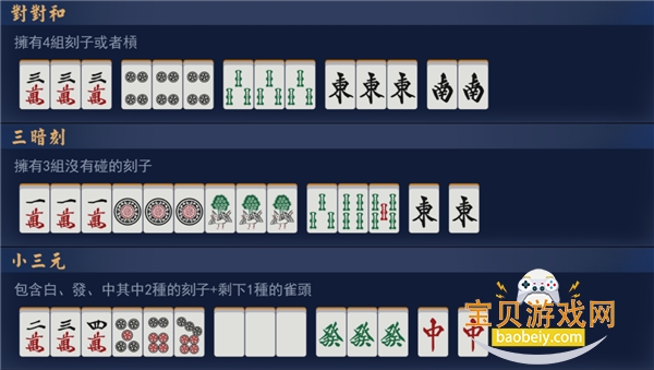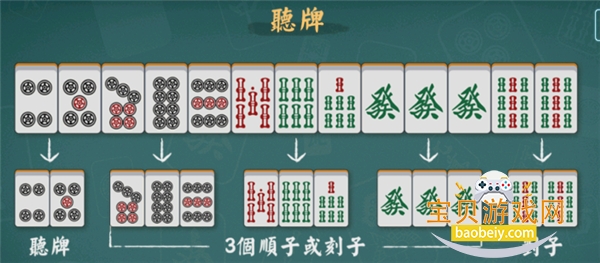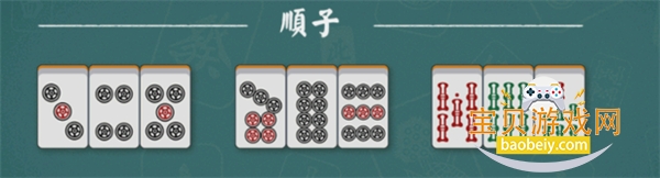 在讲解和牌之前,我们要先了解3个东西:顺子,刻子和对子。