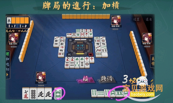 最后就是加杠,加杠就是在你碰过之后,再次摸进与碰相同的牌后行加杠,和其他杠一样,之后会摸一张新的牌,然后打掉一张不要的牌。加杠也算作一个刻子。