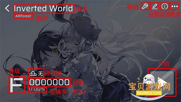 点击右上角“i”图标,进入谱面信息界面,在这里,你可以看到该谱面的歌曲名称、曲师、谱师、难度、简介、评分、分类、谱面ID。
