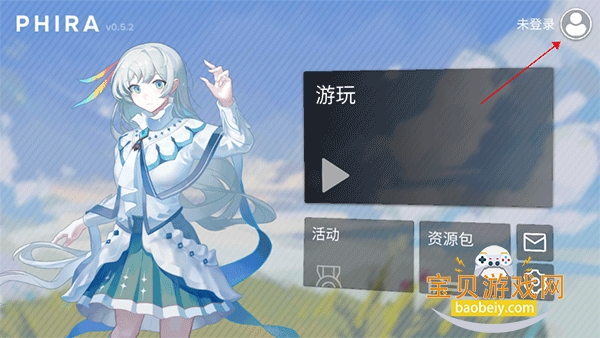 1、首先,Phira音游,进入主页面,点击右上角的人像。