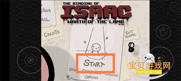 1、打开以撒的结合手机版游戏,点击【START】选择角色。