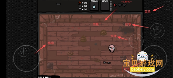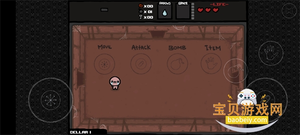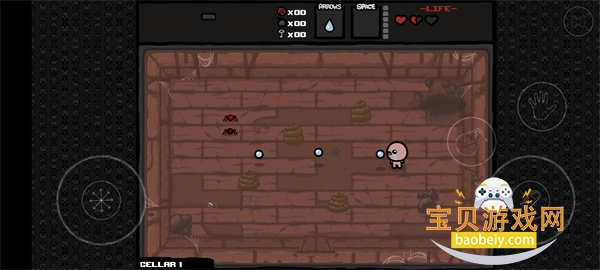 5、进入门内就可以看见敌人,移动角色探索房间,同时选择攻击方向发射眼泪攻击敌人,注意控制走位,避免被敌人碰触,否则会损失血量。