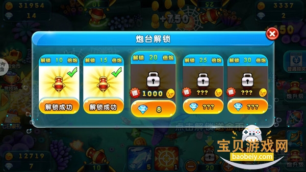 升级炮台能提高捕鱼的杀伤力,攻打大鱼和远处的鱼时必须要使用大炮,如果炮弹不足,是无法捕捉成功的,因此还需要升级炮弹的倍数,倍数越高,冲击力越大。升级炮台需要消耗一定的钻石,钻石如果不够可以在游戏中升级赢得钻石或者去商城购买。