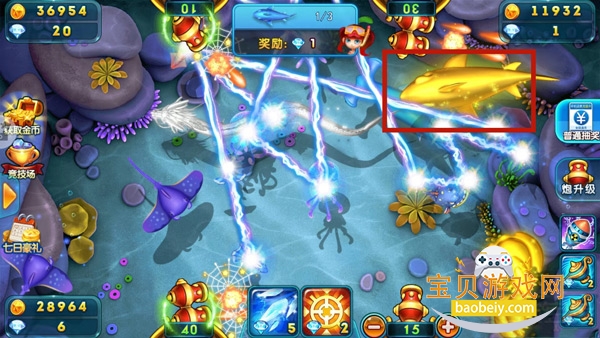 捕鱼不能一味攻打,关键时刻还要恰当使用技能键。像白鲨或者金鲨,捕捉成功获得的奖励都比较大,即便你的炮倍数高,但是不运用一些辅助技能键,未必成功捕到大鱼。使用瞄准技能,配合高炮,就能助你提高命中率。使用冰冻键,能封动全场,这时你移动炮台,找准目标,就比较容易击中。