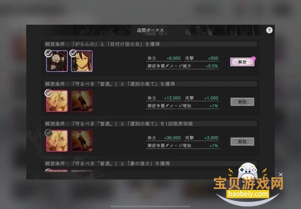 进行极限突破和觉醒如果获取了相同的角色,通过极限突破或觉醒可以达成羁绊等级的条件。请确认存在各个稀有度的角色。