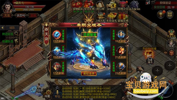 帮众通过消耗金币、声望或者元宝,获得经验和贡献值。累计贡献值达到指定的值,可以激活龙魂BUFF,获得酷炫外观以及属性加成。