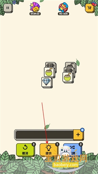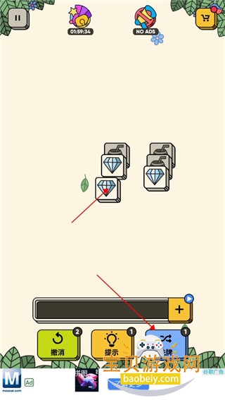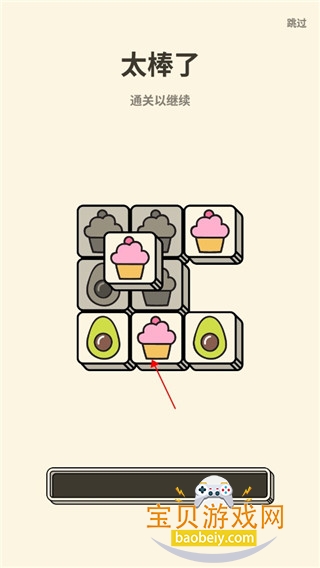 2、玩法:只需点按即可将方块放入堆槽中。三个相同的方块(例如三个草莓)即可匹配消除。