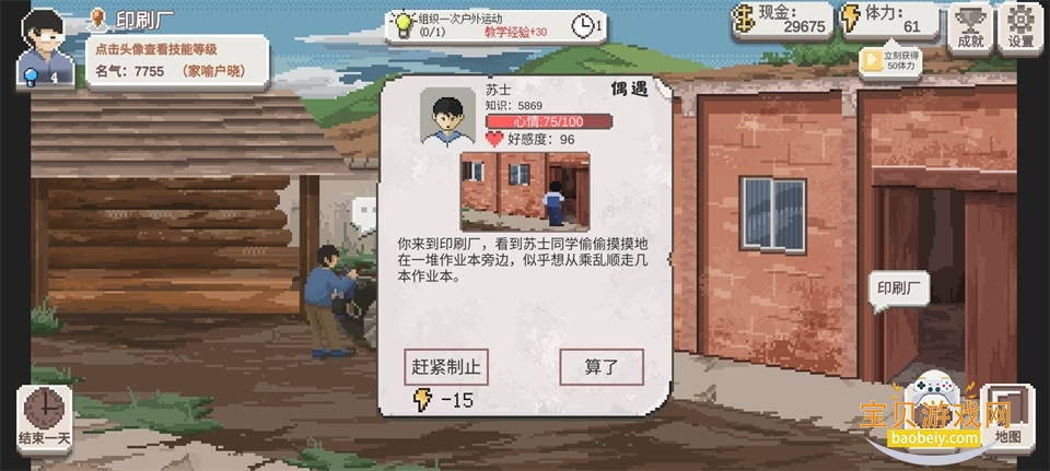 花费15点体力可获得10点名气,但学生心情会降低5点。若前期想快速累积名气,可优先执行。