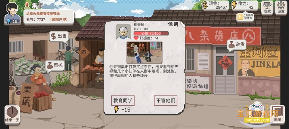 集市的互动事件更贴近日常生活,部分需花费金钱。