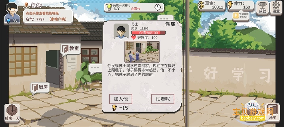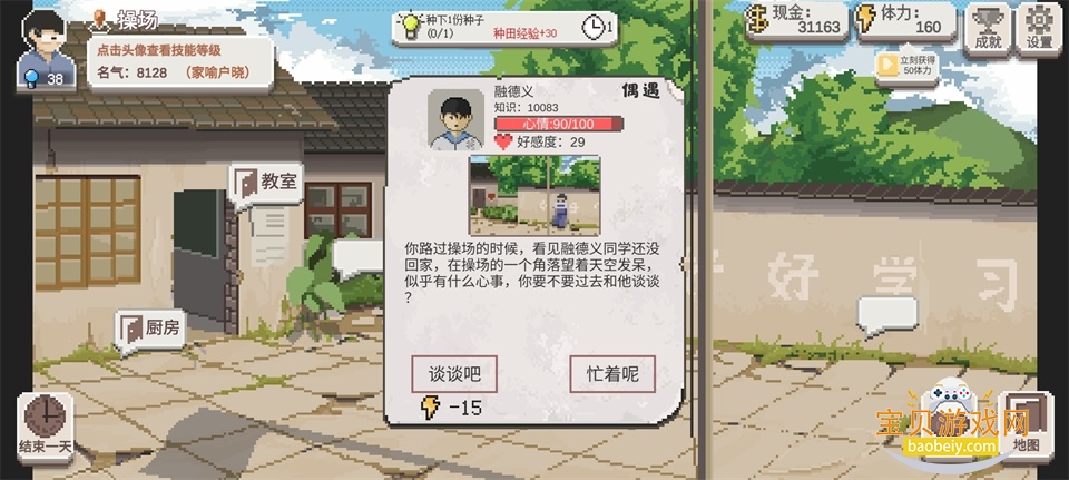 花费100元,学生好感度+18。虽不消耗体力,但前期资金紧张时需谨慎选择。