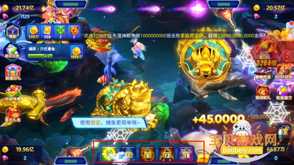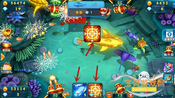 2、下方会出现道具,可以在捕鱼中使用,帮助捕鱼
